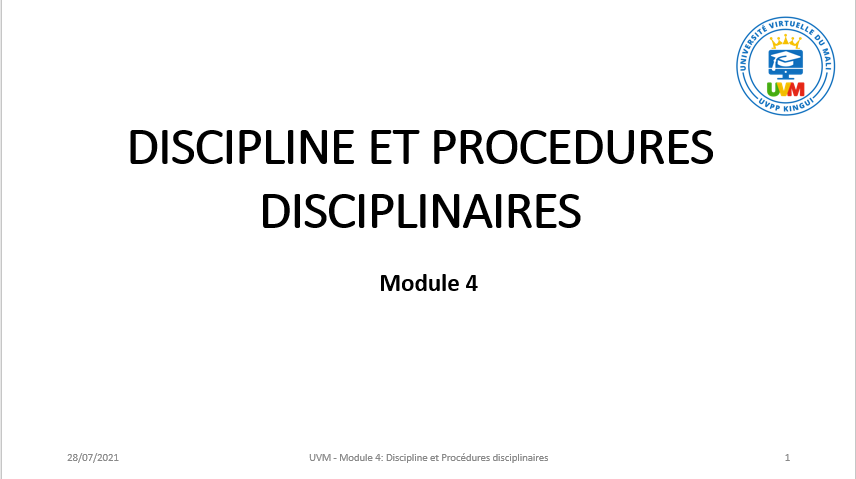 MODULE 4 : DISCIPLINE ET PROCEDURES DISCIPLINAIRES