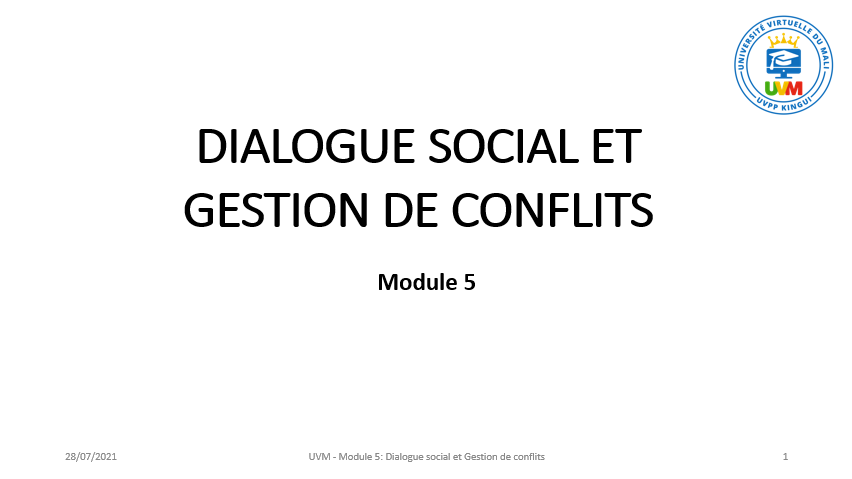 MODULE 5 : DIALOGUE SOCIAL ET GESTION DE CONFLITS