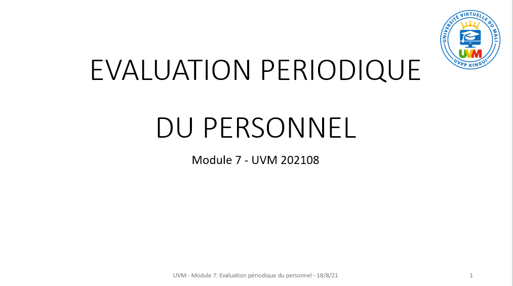 MODULE 7 : EVALUATION PERIODIQUE DU PERSONNEL