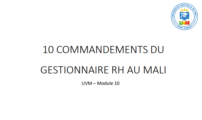 MODULE 10 : LES 10 COMMANDEMENTS DU GESTIONNAIRE RH AU MALI
